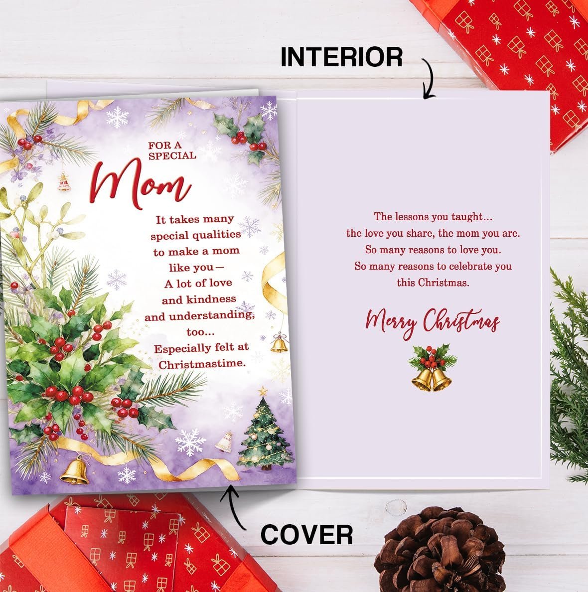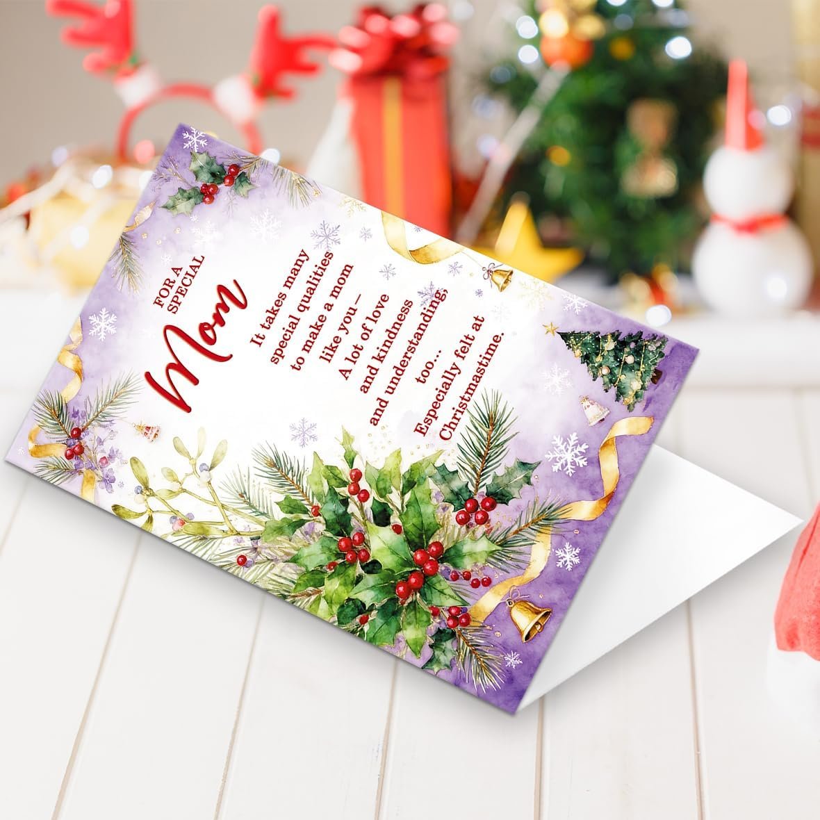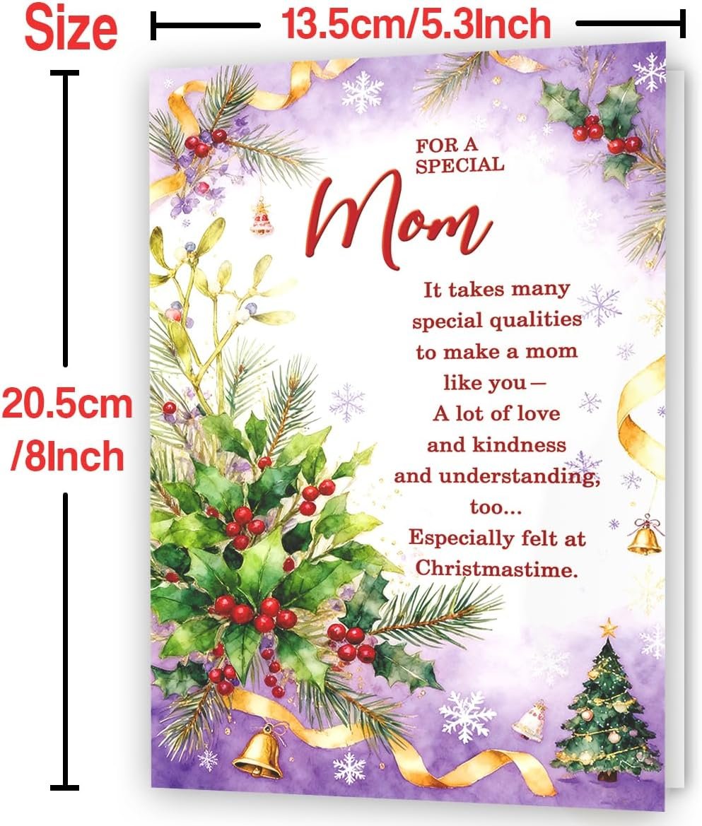 Christmas Card for Mom,Unique Mother Christmas Gift,Romantic Xmas Cards from Son Daughter